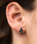 עגיל אלגנטי לא מתאמץ עם אבן אוניקס שחורה בחיתוך מרקיז בשיבוץ מיוחד.