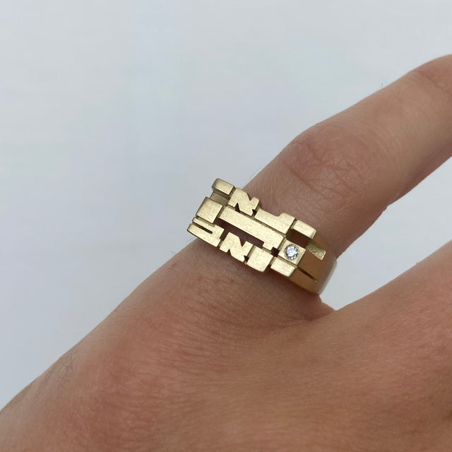 The Love Signet Ring is a handcrafted creation that brings your loved ones into form — with names custom-designed in 3D and built seamlessly into the ring.